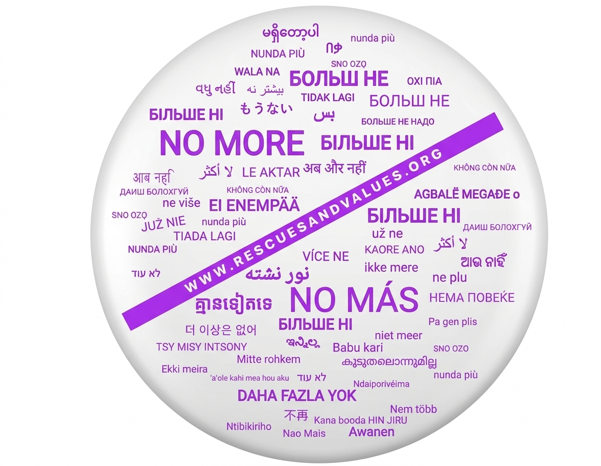 "NO MORE" in several languages is a symbol of unity to raise our voice against any form of mistreatment toward every living being.